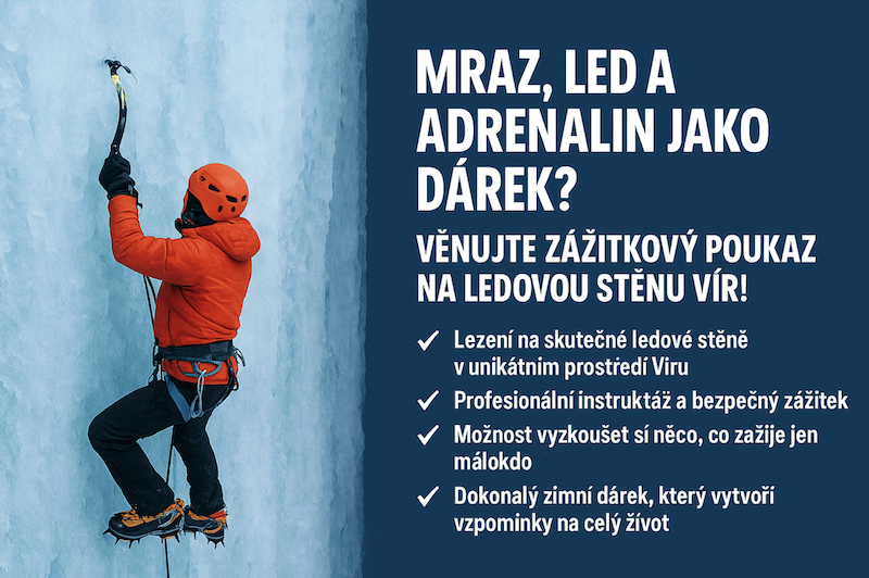 Dárkový poukaz na Ledovou stěnu Vír není jen papír — je to vstupenka do světa zimního dobrodružství.