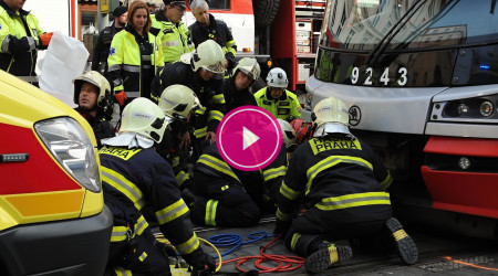 VIDEO: Chodec spadl pod tramvaj. Hasiči ho vyprostili pomocí hydraulických vaků