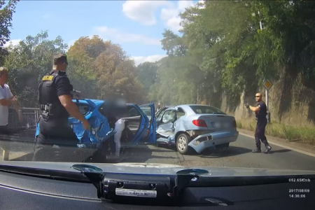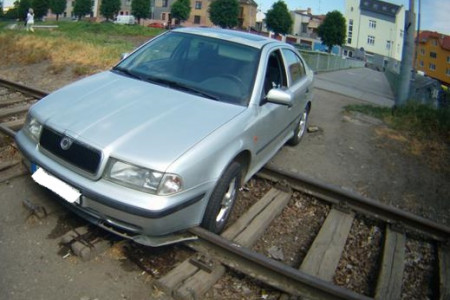 VIDEO: Opilec v Brně jel autem po kolejích. Chtěl projet i po lávce pro chodce