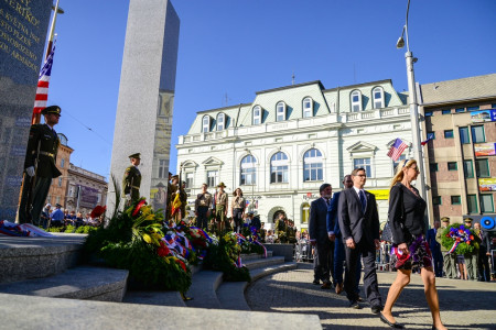Pietu u památníku Díky, Ameriko! v Plzni kazí opilci. Dohlídnou na něj strážníci