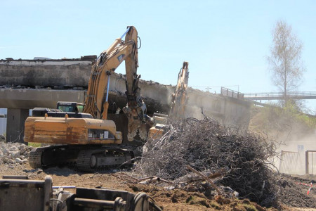 OBRAZEM: Demoliční stroje se zakously do mostu, který spojuje Vídeň s Prahou