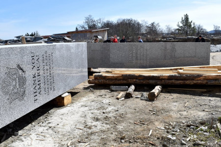 FOTO: Kamenosochaři dokončují nové pylony pro plzeňský památník "Díky Ameriko!"