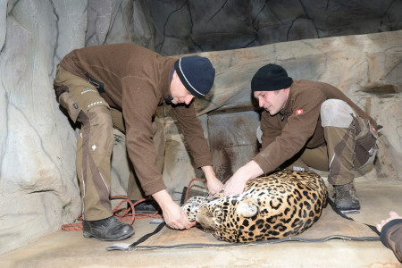FOTO: Jaguáří samici Inti rozbolel zub, do olomoucké zoo musel zubař