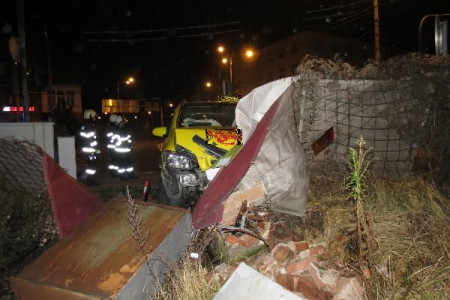 FOTO: Po srážce s vozem taxi v centru Hradce skončilo auto v plotě