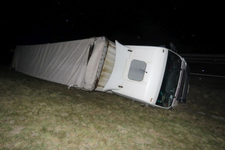Opilý Maďar se zákazem řízení převrátil kamion na D1. Nadýchal přes dvě promile