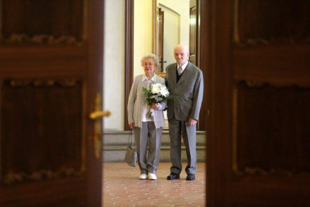 FOTO: Před 70 lety si řekli ano. Platinová svatba se na radnici v Jihlavě slavil...