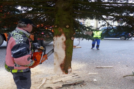 Hasiči kontrolují, jestli jsou vánoční stromy na náměstích dobře usazené